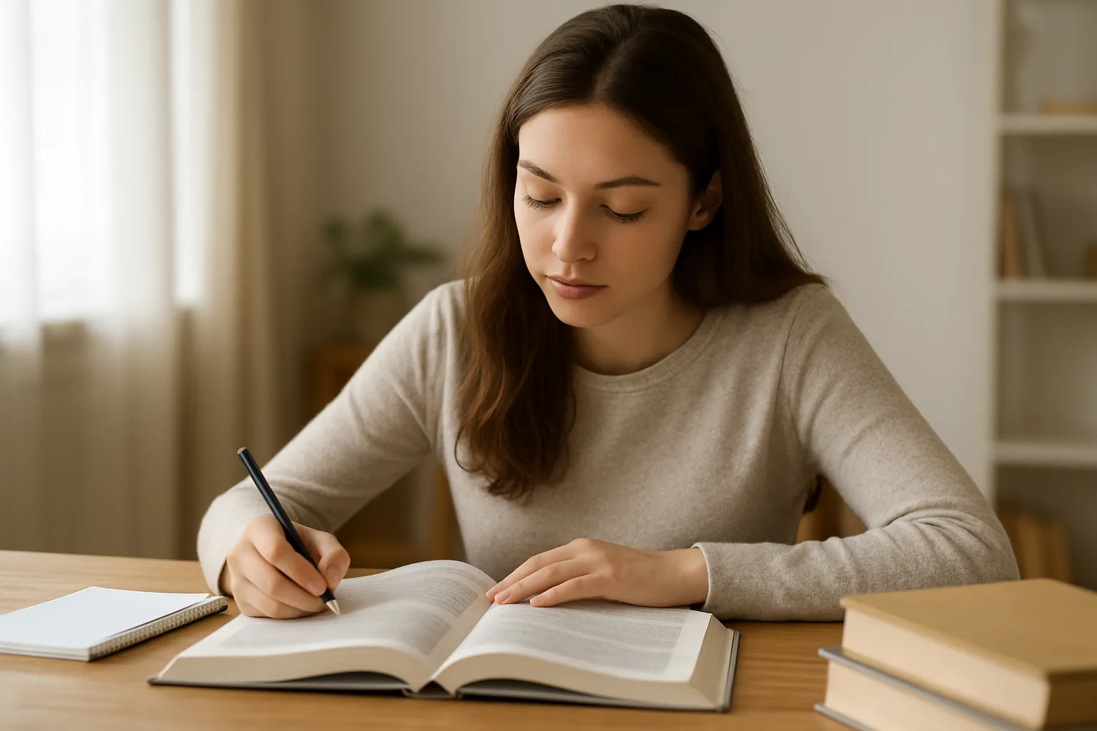 - “Me gusta leer libros” (simple).